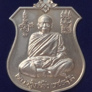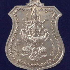 เหรียญโล่กันภัย หลังนารายณ์ทรงครุฑ ปี 57 เนื้ออัลปาก้า หลวงปู่เกลี้ยง วัดโนนแกด จ.ศรีสะเกษ
