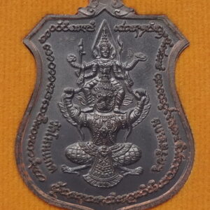 เหรียญโล่กันภัย หลังนารายณ์ทรงครุฑ ปี 57 เนื้อทองแดง หลวงปู่เกลี้ยง วัดโนนแกด จ.ศรีสะเกษ