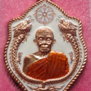 เหรียญมังกรคู่ สมปรารถนา ปี 57 เนื้อทองระฆังลงยาสีแดง หมายเลข ๒๕๔ หลวงพ่อคูณ วัดบ้านไร่ จ.นครราชสีมา