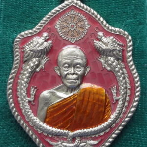 เหรียญมังกรคู่ สมปรารถนา ปี 57 เนื้อเงินลงยาสีแดง หมายเลข ๔๖ หลวงพ่อคูณ วัดบ้านไร่ จ.นครราชสีมา