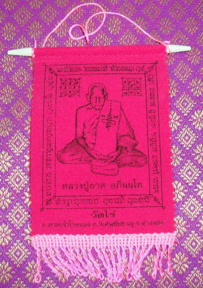 ธงแขวนหน้ารถ สีชมพู หลวงปู่ผาด วัดไร่ จ.อ่างทอง