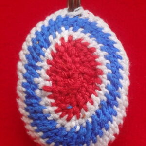 เบี้ยแก้ถักลายธงชาติห่วงเดี่ยว 2 ห่วง ปี 50 หน้าสีแดง หลังสีแดง หลวงปู่เจือ วัดกลางบางแก้ว จ.นครปฐม