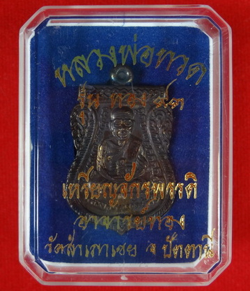 เหรียญทองจักรพรรดิ์ (เหรียญเสมาหลวงปู่ทวดหน้าเลื่อน 2 จุด ประคตขาด ช้างปล้อง หลังหลวงพ่อทอง) รุ่นทอง 93 หลวงพ่อทอง วัดสำเภาเชย จ.ปัตตานี ปี พ.ศ.2553 เนื้อทองแดงรมดำ ตอกโค๊ต จำนวนสร้าง 8,999 เหรียญ