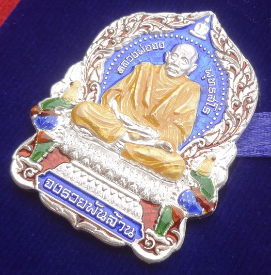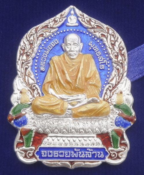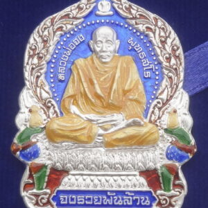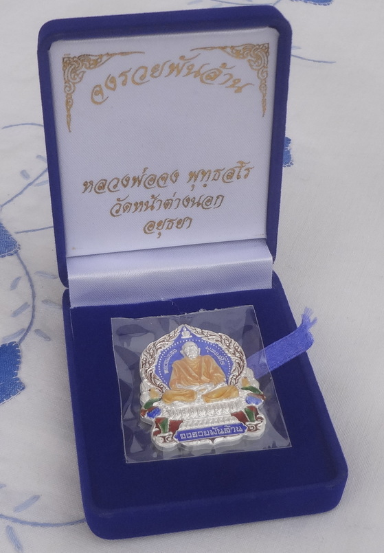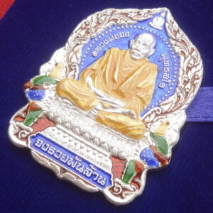 เหรียญเสมานั่งพานจงรวยพันล้าน หลวงพ่อจง หลวงพ่อแม้น วัดหน้าต่างนอก จ.พระนครศรีอยุธยา พิธีพุทธาภิเษก วันที่ 27 ตุลาคม พ.ศ.2562 เนื้อเงินลงยา สีน้ำเงิน ตอกโค๊ตและหมายเลข ๗ ขนาดเหรียญ 3.1 x 4.1 ซ.ม. จำนวนสร้าง 99 เหรียญ