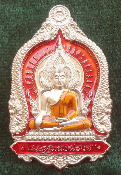 เหรียญพระพุทธชินราช จักรพรรดิ์ ปี 63 เนื้ออัลปาก้า ลงยาสีแดง หมายเลข ๑๑๔ หลวงพ่อพัฒน์ วัดห้วยด้วน จ.นครสวรรค์