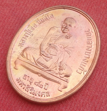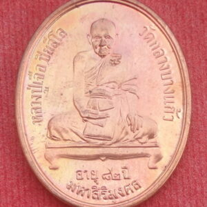เหรียญสดุ้งกลับ อายุ 82 ปี มหาสิริมงคล หลวงปู่เจือ วัดกลางบางแก้ว จ.นครปฐม ปี พ.ศ.2549 เนื้อทองแดง ตอกโค๊ต ขนาดเหรียญ 2.4 x 3.0 ซ.ม.
