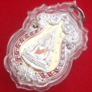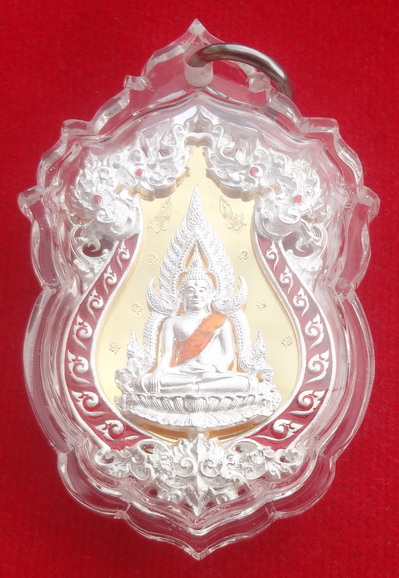 เหรียญหล่อฉลุพระพุทธชินราช รุ่นจอมราชันย์ ปี พ.ศ.2555 วัดพระศรีรัตนมหาธาตุวรมหาวิหาร (วัดใหญ่) จ.พิษณุโลก เนื้อเงินลงยาราชาวดี สีแดง องค์พระเงิน ยิงโค๊ต ยิงพุทธชยันตี และหมายเลข ๔๑ เลี่ยมกันน้ำให้แล้ว พร้อมกล่องเดิม จำนวนสร้าง 2,555 องค์
