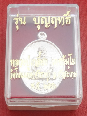เหรียญหล่อรูปไข่หลวงปู่ทวดหลังหลวงปู่เกลี้ยงรุ่นแรก หลวงปู่เกลี้ยง วัดโนนแกด (ศรีธาตุ) จ.ศรีสะเกษ รุ่นบุญฤทธิ์ (มหาเทพประทานพร) 17 ธันวาคม พ.ศ.2556 เนื้อเงิน ตอกโค๊ตและหมายเลข ๙๔ ขนาดเหรียญรวมห่วง 2.8 x 4.4 ซ.ม. จำนวนสร้าง 199 เหรียญ