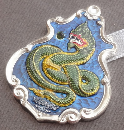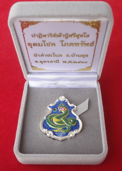 เหรียญอุดมโชค โภคทรัพย์ ปี 60 เนื้อเงินลงยาสีน้ำเงิน หมายเลข ๑๒ เจ้าปู่ศรีสุทโธ ป่าคำชะโนด จ.อุดรธานี