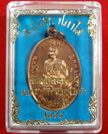 เหรียญรูปไข่นั่งเต็มองค์ (เจริญพรบน) หลวงปู่แขก วัดสุนทรประดิษฐ์ อ.บางระกำ จ.พิษณุโลก รุ่นเจริญพร 17 พฤษภาคม พ.ศ. 2554 อายุ 88 ปี เนื้อทองแดง ตอกโค๊ต จำนวนสร้าง 2,999 เหรียญ