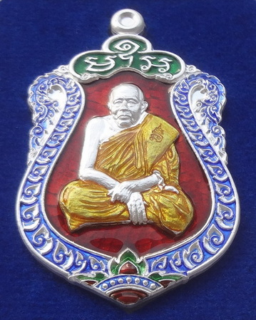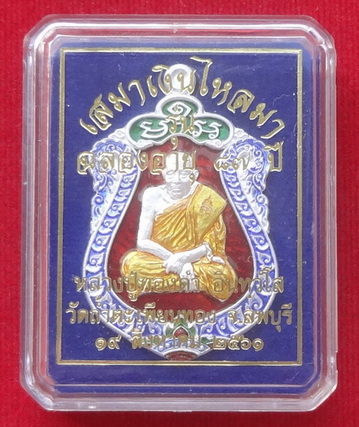 เหรียญเสมาเงินไหลมา หลวงพ่อทองดำ วัดถ้ำตะเพียนทอง จ.ลพบุรี ฉลองอายุ 87 ปี วันที่ 19 สิงหาคม พ.ศ.2561 เนื้อเงินลงยาสีแดง ตอกโค๊ตและหมายเลข ๔๘ ขนาดเหรียญรวมห่วงตัน 2.8 x 4.4 ซ.ม. จำนวนสร้าง 299 เหรียญ