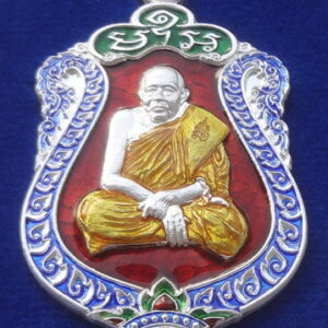 เหรียญเสมาเงินไหลมา ปี 61 เนื้อเงินลงยาสีแดง หมายเลข ๔๘ หลวงพ่อทองดำ วัดถ้ำตะเพียนทอง จ.ลพบุรี