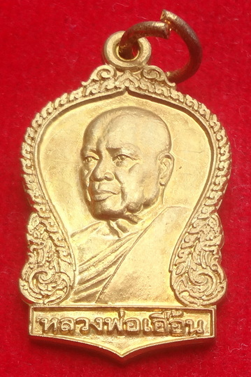 เหรียญใบเสมาครึ่งองค์ หลวงพ่อเอื้อน วัดวังแดงใต้ จ.พระนครศรีอยุธยา ปี พ.ศ.2549 เนื้อทองเหลือง ขนาดเหรียญรวมห่วงเจาะ ไม่รวมห่วงแขวน 1.8 x 3.0 ซ.ม. จำนวนสร้าง 1,000 เหรียญ (หลวงพ่อเมตตาจาร 200 ไม่มีจาร 100 ครับ)