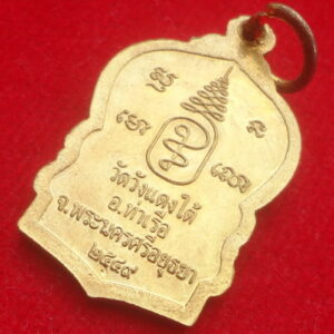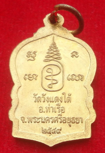 เหรียญใบเสมาครึ่งองค์ ปี 49 เนื้อทองเหลือง หลวงพ่อเอื้อน วัดวังแดงใต้ จ.อยุธยา