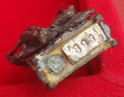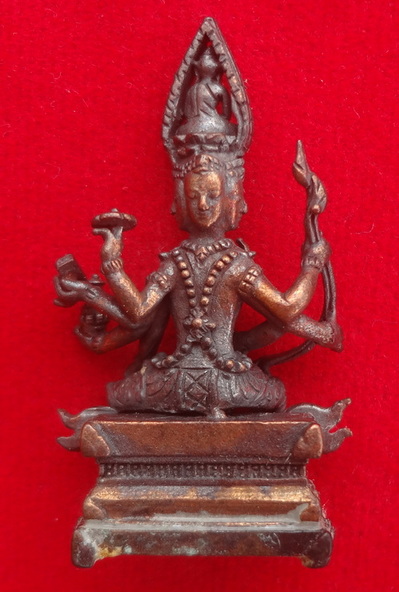 ท้าวมหาพรหม รุ่นแรก หลวงปู่บัว วัดทัพหลวง จ.สระแก้ว ปี พ.ศ.2554 เนื้อนวโลหะ ใต้ฐานอุดผงว่านบัวผุด เม็ดโค๊ตทองแดง และตอกหมายเลขบนแผ่นเงิน 893 ขนาดฐาน 0.8 x 2.0 สูง 4.1 ซ.ม. จำนวนสร้าง 999 องค์