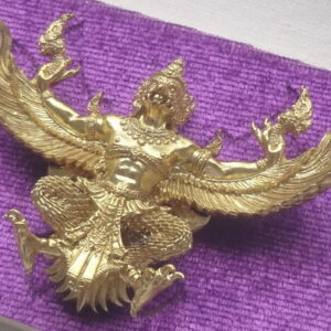 พญาครุฑเชิญธงเศรษฐี ปี 64 พิมพ์ใหญ่ เนื้อปีกเครื่องบิน ชุบทอง ลงยาราชาวดี วัดครุฑธาราม จ.อยุธยา