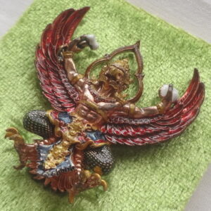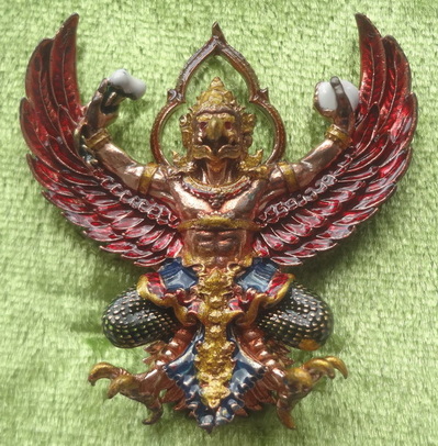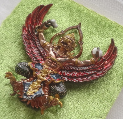 พญาครุฑพุทธบูชา (รุ่น 2) วัดครุฑธาราม จ.พระนครศรีอยุธยา รุ่นเศรษฐีมหาเศรษฐี พิธีพุทธาภิเษก วันเสาร์ที่ 16 มิถุนายน พ.ศ.2561 เนื้อสัมฤทธิ์แดงแรงเดช ลงยาราชาวดี ยิงโค๊ตและหมายเลข ๖๓ ขนาด 3.5 x 3.5 ซ.ม. จำนวนสร้าง 699 องค์