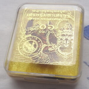 พญาครุฑพุทธบูชา วัดครุฑธาราม จ.พระนครศรีอยุธยา รุ่นเศรษฐีมหาเศรษฐี พิธีพุทธาภิเษก วันเสาร์ที่ 16 มิถุนายน พ.ศ.2561 เนื้อทองสัตตะเมฆา สัมฤทธิ์สิทธิ์อำนาจ (ปากทอง) ยิงโค๊ตและหมายเลข ๒๐๑ ขนาด 3.5 x 3.5 ซ.ม. จำนวนสร้าง 999 องค์