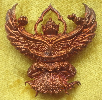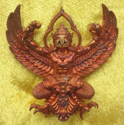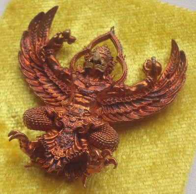พญาครุฑเชิญธงเศรษฐี ปี 64 พิมพ์ใหญ่ เนื้อปีกเครื่องบิน ชุบทอง ลงยาราชาวดี วัดครุฑธาราม จ.อยุธยา