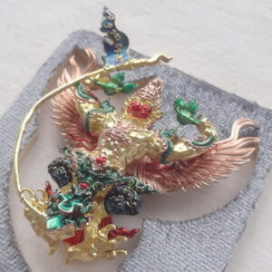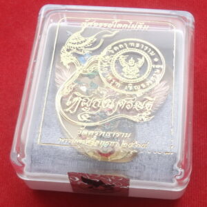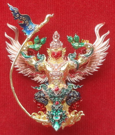 พญาครุฑเชิญธงเศรษฐี ปี 64 พิมพ์ใหญ่ เนื้อปัญจโลหะ ชุบ 2K ลงยาราชาวดี หมายเลข ๑๒๗ วัดครุฑธาราม จ.อยุธยา