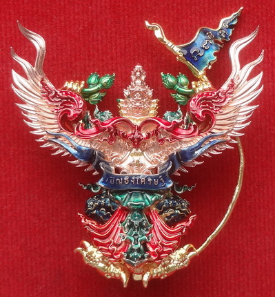 พญาครุฑเชิญธงเศรษฐี ปี 64 พิมพ์เล็ก เนื้อเงินลงยาราชาวดี หมายเลข ๗๐๘ วัดครุฑธาราม จ.อยุธยาหมา