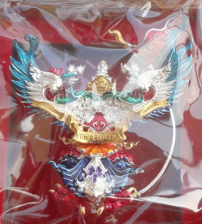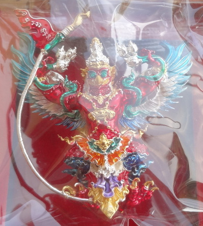 พญาครุฑเชิญธงเศรษฐี ปี 64 พิมพ์ใหญ่ เนื้อเงินลงยาราชาวดี หมายเลข ๔๖๐ วัดครุฑธาราม จ.อยุธยาหมา