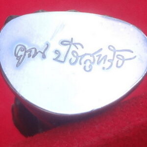พระกริ่งฐานลายเซ็นต์ หลวงพ่อคูณ วัดบ้านไร่ จ.นครราชสีมา 3 กรกฎาคม พ.ศ.2557 เนื้อนวะแก่ทองคำปลอกผิวก้นเงิน นำฤกษ์ (เทในพิธี) ตอกโค๊ตและหมายเลข ๒๐๐ ขนาดฐาน 1.5 x 2.1 สูง 3.9 ซ.ม.จำนวนสร้าง 1,299 องค์