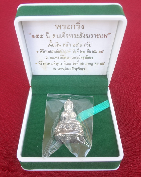 พระกริ่ง 155 ปี พระสังฆราชแพ วัดสุทัศน์เทพวราราม กรุงเทพมหานคร พิธีเททองหล่อปฐมฤกษ์ มณฑลพิธีพระอุโบสถวัดสุทัศน์ วันที่ 27 มีนาคม พ.ศ.2555 (ขึ้น 5 ค่ำ เดือน 5) พิธีจักรพรรดิพุทธาภิเษก โดยเกจิอาจารย์ทั่วประเทศ 108 รูป วันที่ 26 กรกฎาคม พ.ศ.2555 (ขึ้น 8 ค่ำ เดือน 8) เนื้อเงิน ตอกโค๊ตและหมายเลข ๑๗๗๓ ขนาดฐาน 1.5 x 2.0 สูง 3.7 ซ.ม. จำนวนสร้าง 1,999 องค์