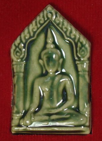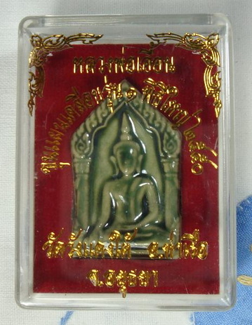 พระขุนแผนวังแดงรุ่นแรก หลวงพ่อเอื้อน วัดวังแดงใต้ จ.พระนครศรีอยุธยา ปี พ.ศ.2548 เนื้อดินขาวผิวเคลือบเซรามิคสีเขียว จำนวนสร้าง 2,999 องค์ (หลวงพ่อเมตตาจารให้แล้วครับ)