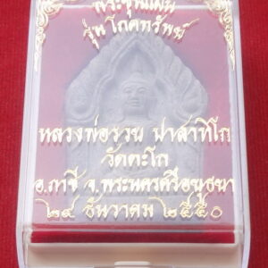 พระผงขุนแผนโภคทรัพย์ หลวงพ่อรวย วัดตะโก จ.พระนครศรีอยุธยา พิธีพุทธาภาเษกวันที่ 29 ธันวาคม พ.ศ.2550 เนื้อผงชานหมาก ฝังพลอย ฝังตะกรุดเงิน กดโค๊ต ขนาด 3.0 x 4.9 ซ.ม. จำนวนสร้างน้อยมาก