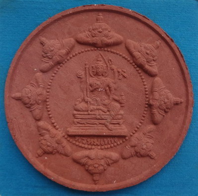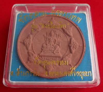 พระพรหมเทพ – ตอกถัก รุ่นรวยไม่เลิก วัดขุนพรหม จ.พระนครศรีอยุธยา วันพฤหัสบดี ที่ 3 พฤษภาคม พ.ศ.2550 เนื้อผงว่านแดง ขนาด 5.5 ซ.ม.