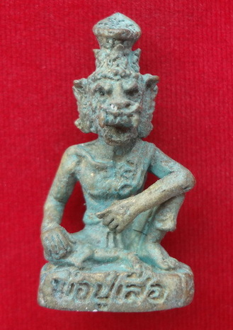 พ่อปู่เสือนั่งชันเข่าขนาดห้อยคอ ปี 51 เนื้อสัมฤทธิ์ สนิมเขียว หมายเลข 200 หลวงปู่กาหลงเขี้ยวแก้ว วัดเขาแหลม จ.สระแก้ว