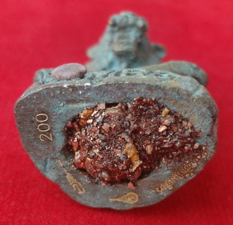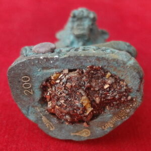 รูปหล่อโบราณฤาษีปู่เสือนั่งชันเข่าขนาดห้อยคอ หลวงปู่กาหลงเขี้ยวแก้ว วัดเขาแหลม จ.สระแก้ว รุ่นจักรพรรดิ์นารายณ์ ที่ระลึกงานพิธีไหว้ครู ปี พ.ศ.2551 เนื้อสัมฤทธิ์ขอมโบราณพันปี ผิวสนิมเขียว ยิงโค๊ตและหมายเลขเลเซอร์ อุดดิน 7 โป่งฝังเหรียญเศียรฤาษีจิ๋ว หมายเลข 200 ขนาดฐาน 1.8 x 2.3 สูง 4.6 ซ.ม. จำนวนสร้าง 4,999 องค์