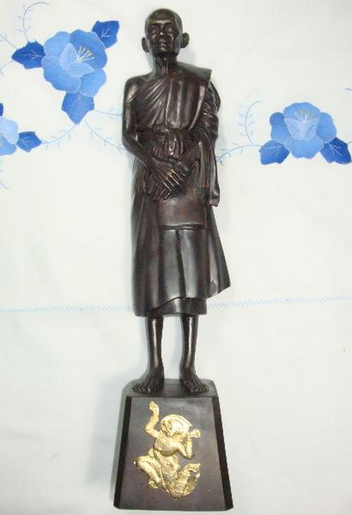 รูปหล่อบูชายืนหลวงปู่บุญ เปิดพิพิธภัณฑ์ ปี พ.ศ.2537 หลวงปู่เจือ วัดกลางบางแก้ว จ.นครปฐม ใต้ฐานใส่ซองผงพุทธคุณหลวงปู่บุญแท้ ต่อมาแมลงกัดถุงทะลุวัดจึงปิดด้วยปูนขาว (หลวงปู่เจือเมตตาจารย์หลังองค์ให้ 3 แถวครับ)
