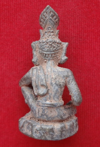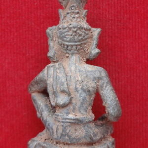 รูปหล่อโบราณฤาษีปู่เสือนั่งชันเข่าขนาดห้อยคอ หลวงปู่กาหลงเขี้ยวแก้ว วัดเขาแหลม จ.สระแก้ว รุ่นจักรพรรดิ์นารายณ์ ที่ระลึกงานพิธีไหว้ครู ปี พ.ศ.2551 เนื้อสัมฤทธิ์ขอมโบราณพันปี เทดินไทยโบราณ ยิงโค๊ตและหมายเลขเลเซอร์ อุดดิน 7 โป่งฝังเหรียญเศียรฤาษีจิ๋ว หมายเลข 650 ขนาดฐาน 1.8 x 2.3 สูง 4.6 ซ.ม. จำนวนสร้าง 4,999 องค์