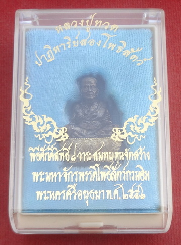รูปหล่อลอยองค์หลวงปู่ทวดฐานบัว 4 ชั้น (ประกอบ 2 ชิ้น) อุดกริ่งมวลสาร สูง 1.2 นิ้ว รุ่นปาฏิหาริย์สองโพธิสัตว์ จ.พระนครศรีอยุธยา พิธีขอพรความสำเร็จ 6 วาระ พิธิพุทธาพิเษก 2 วาระ รวม 8 วาระแห่งความมงคล ปี พ.ศ.2556 เนื้อไวท์บราส ฐานทองระฆัง ยิงโค๊ตและหมายเลขเลเซอร์ ๕๓๗ และการ์ดประจำองค์พระ ระบบ QR Code จำนวนสร้าง 995 องค์