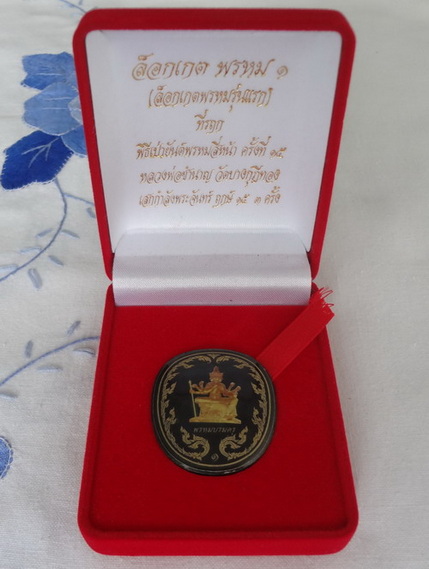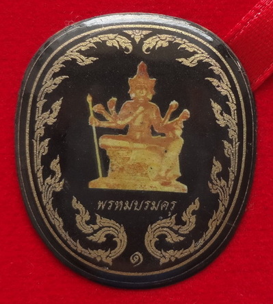 ล็อกเกตใหญ่พระพรหมรุ่นแรก ปี 58 ฉากดำลายน้ำทอง หมายเลข 297 หลวงพ่อชำนาญ วัดบางกุฎีทอง จ.ปทุมธานี
