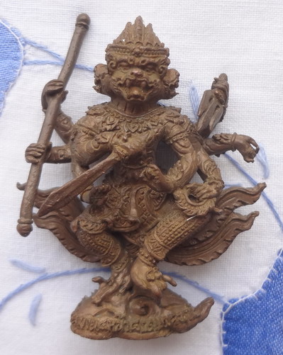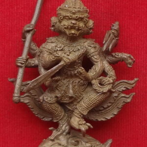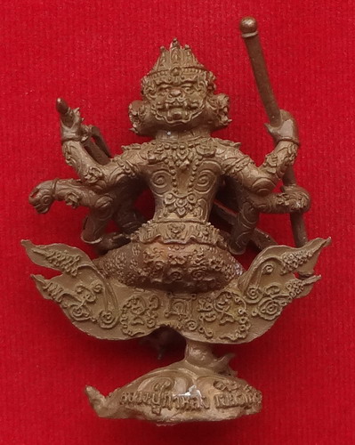 หนุมาน 4 หน้า 8 กร ปางอวตารแผลงฤทธิ์ หลวงปู่กาหลงเขี้ยวแก้ว วัดเขาแหลม จ.สระแก้ว รุ่นไหว้ครู ปี พ.ศ.2552 พิธีมหาพุทธาภิเษกใหญ่ วันที่ 9 กันยายน 2552 ณ วัดสุทัศนเทพวราราม เนื้อนวโลหะขอมโบราณพันปี แช่น้ำมนต์เสก ใต้ฐานอุดผง หินเขี้ยวแก้วหนุมาน ฝังเม็ดโค๊ต ยิงโค๊ตและหมายเลข 221 ขนาดฐาน 1.5 x 2.7 สูง 5.7 ซ.ม. จำนวนสร้าง 999 องค์