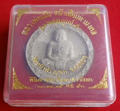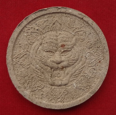 หลวงพ่อแม้นหลังเสือมหามงคล พิมพ์เล็ก หลวงพ่อแม้น วัดหน้าต่างนอก จ.พระนครศรีอยุธยา รุ่นทรัพย์สมบูรณ์ ปี พ.ศ.2550 เนื้อผงสองสีโรยผงตะไบ ขนาด 3.4 ซ.ม.