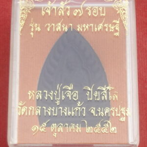 เจ้าสัว 7 รอบ รุ่นวาสนา มหาเศรษฐี หลวงปู่เจือ วัดกลางบางแก้ว จ.นครปฐม ปี พ.ศ.2552 เนื้อผงยาจินดามณี ฝังตะกรุดเทพรัญจวนทองแดง พลอยเสก ยิงโค๊ตและหมายเลข (เลขไทย) _ _ _ ขนาด 2.3 x 3.3 ซ.ม. จำนวนสร้าง 3,999 องค์
