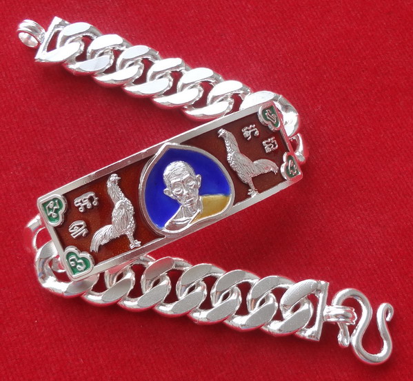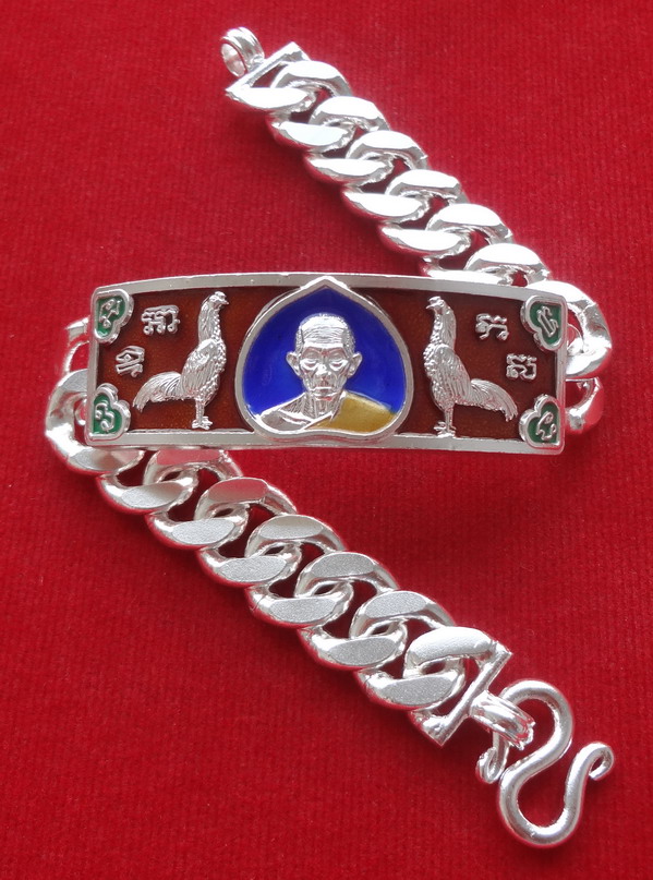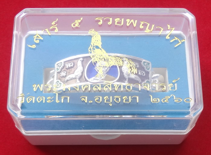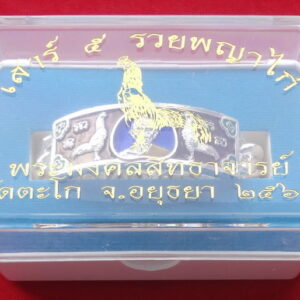 เลสมงคลเสาร์ 5 รวยพญาไก่ หลวงพ่อรวย วัดตะโก จ.พระนครศรีอยุธยา พิธีพุทธาภิเษก วันเสาร์ที่ 1 เมษายน พ.ศ.2560 เนื้อเงินลงยา สีแดง หนัก 4 บาท ตอกโค๊ตและหมายเลข ๒๓๘๑ จำนวนสร้าง 8,000 เส้น