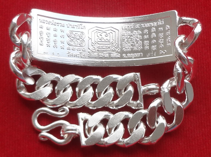 เลสรวยทรัพย์แสนล้าน ปี 61 เนื้อเงินลงยาสีน้ำเงิน หนัก 4 บาท หลวงพ่อรวย วัดตะโก จ.อยุธยา