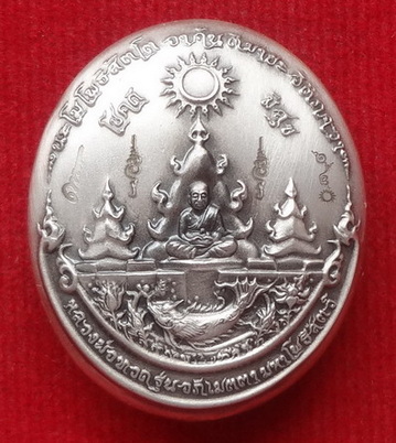 เหรียญกริ่งหลวงปู่ทวด รุ่นอภิเมตตา มหาโพธิสัตว์ (แบบที่ 2) โชคดี มีสุข ปี 58 เนื้อเงิน องค์นวโลหะ พิมพ์เล็ก หมายเลข ๑๒๐ พุทธอุทยานมหาราช วัดวชิรธรรมาราม จ.อยุธยา