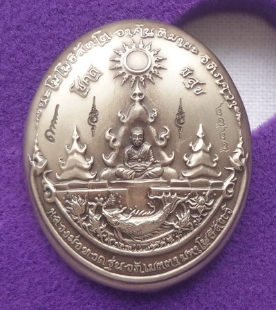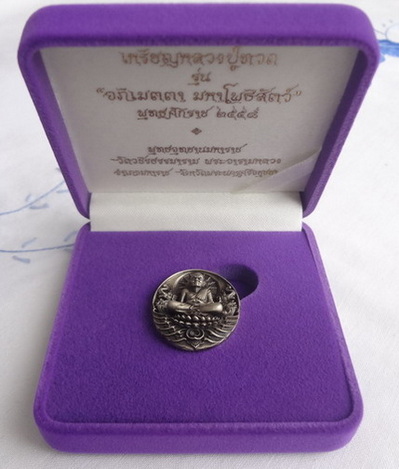 เหรียญกริ่งหลวงปู่ทวด รุ่นอภิเมตตา มหาโพธิสัตว์ (แบบที่ 2) โชคดี มีสุข ปี 58 เนื้ออัลปาก้า พิมพ์เล็ก หมายเลข ๒๓๒๓ พุทธอุทยานมหาราช วัดวชิรธรรมาราม จ.อยุธยา