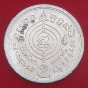 เหรียญเสมาพุทธซ้อนเปิดโลกเศรษฐี 55 เนื้อเงินลงยาสีแดง หมายเลข ก ๑๑๘ หลวงปู่ดู่ วัดสะแก จ.อยุธยา