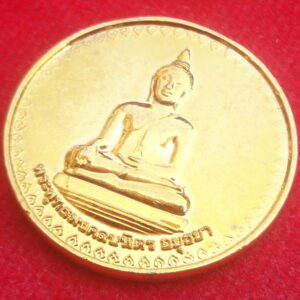 เหรียญกลมพระพุทธมงคลบพิตร อยุธยา หลังสมเด็จพระพุฒาจารย์ (โต) พรหมรังสี พ.ศ.2541 วัดอัมพุวราราม อ.สามโคก จ.ปทุมธานี รุ่นเฉลิม – ฉลอง พระชนมายุครบ 7 รอบ 84 พรรษา สมเด็จพระญาณสังวร สมเด็จพระสังฆราชสกลสังฆปรินายก วัดบวรนิเวศวิหาร ทรงประทานชนวนทองเหลือง น้ำพระพุทธมนต์ กดพิมพ์เป็นปฐมฤกษ์ พิธีมหาพุทธาภิเษก ณ อุโบสถ วัดบวรนิเวศวิหาร กรุงเทพมหานคร วันศุกร์ที่ 7 พฤศจิกายน 2540 อันเป็นสมโณฤกษ์ ราชาฤกษ์ มหัทธโนฤกษ์ โชคลาภดี เนื้อกะไหล่ทอง ขนาดเหรียญ 2.5 ซ.ม. (จัดใส่กล่องประกวดครับ)