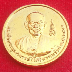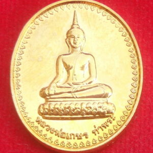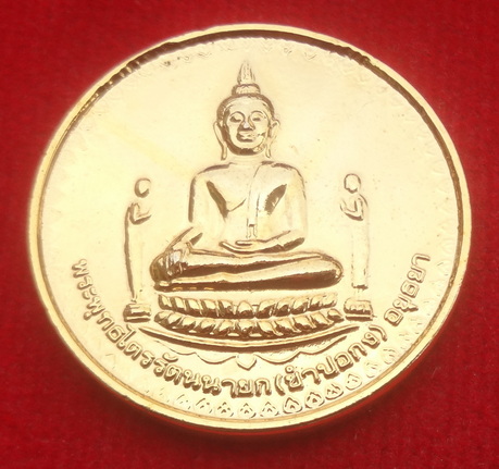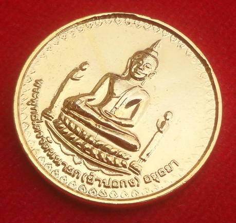 เหรียญกลมพระพุทธไตรรัตนนายก (ซัมปอกง) อยุธยา หลังหลวงพ่อกลั่น ปี 41 เนื้อกะไหล่ทอง วัดอัมพุวราราม จ.ปทุมธานี