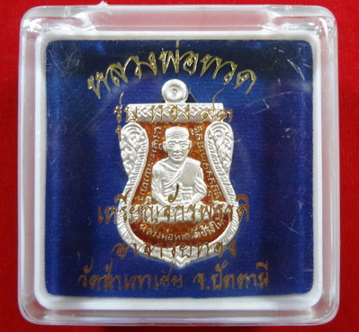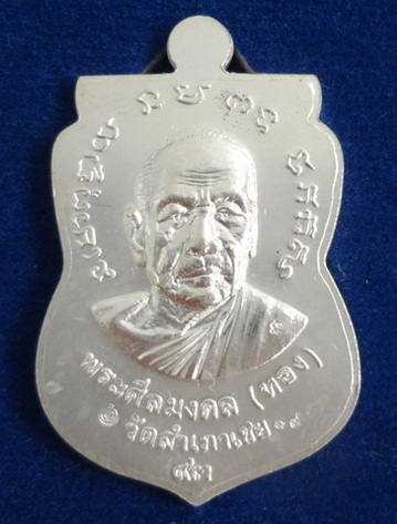 เหรียญทองจักรพรรดิ์ (เหรียญเสมาหลวงปู่ทวดหน้าเลื่อน 2 จุด ประคตขาด ช้างปล้อง หลังหลวงพ่อทอง) รุ่นทอง 93 หลวงพ่อทอง วัดสำเภาเชย จ.ปัตตานี ปี พ.ศ.2553 เนื้อเงินลงยาสีแดง ตอกโค๊ตละหมายเลข ๑๙ จำนวนสร้าง 999 เหรียญ