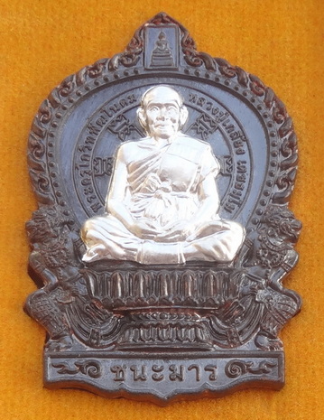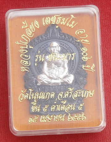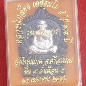 เหรียญนั่งพานชนะมาร ปี 56 เนื้อนวะหน้ากากเงิน หมายเลข ๑๙๑ หลวงปู่เกลี้ยง วัดโนนแกด จ.ศรีสะเกษ