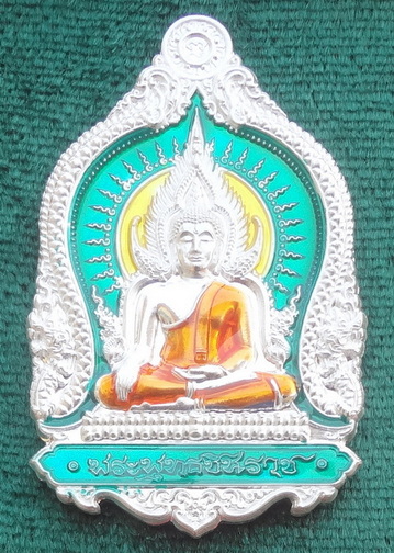 เหรียญพระพุทธชินราช จักรพรรดิ์ ปี 63 เนื้อเงิน ลงยาสีเขียว หมายเลข ๖๕ หลวงพ่อพัฒน์ วัดห้วยด้วน จ.นครสวรรค์